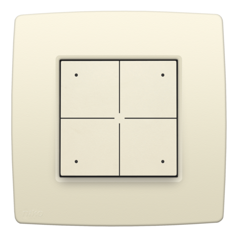 Dette firedobbelte tryk kan konfigureres til at styre en lang række scenarier og programmeringer i en Niko Home Control II installation på busledningsføring. Det er forsynet med programmerbare LED'er, der giver feedback på den programmering, der udføres. Derudover kan trykket fungere som orienteringslys, når LED'erne er tændt.