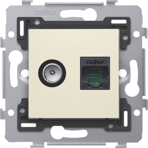 Combination coax with RJ45 connection UTP Cat. 5E, flat model, incl. base 71 x 71 mm with skruefastgørelse and finishing set, cream
