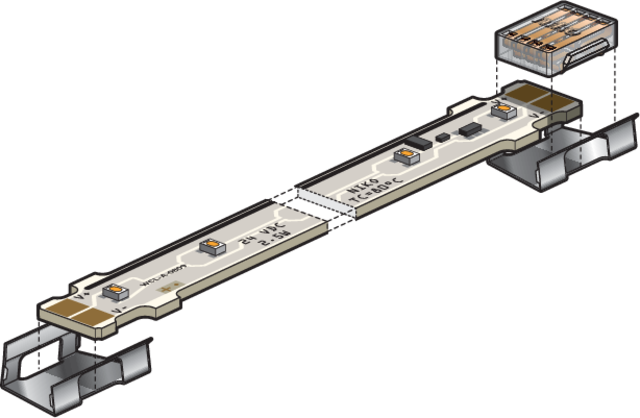 This LED strip with 32 LED’er pr. ledningsbane s built into the protection profile (340-00301) and, thanks to the plug-and-play connection system, can be installed very easily. The LED strip can be divided into 4 parts of 10 cm each. Colour LEDs: amber (587 nm).