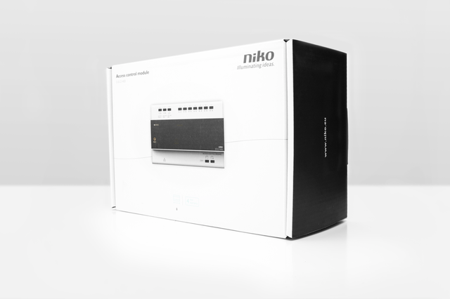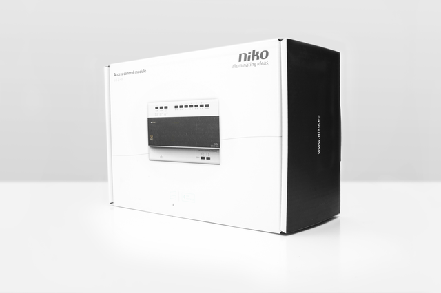 Lydgiveren og dørlåsene kan forbindes til adgangskontrolmodulet (anbefalet). Dette modul har en knap til NULSTILLING, der genstarter alle tilsluttede enheder. Hver installation skal bestå af et controllermodul. Du kan registrere din eksterne videodørtelefon via appen Niko Access Control (Android eller iOS), så du kan styre installationen fra din smartphone. Sørg for, at dit adgangskontrolmodul er forbundet til din netværksrouter.