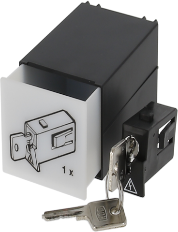 Anvendes sammen TYTAN® II gruppeafbrydere. Aflås TYTAN® II gruppeafbryderen i afbrudt stilling, når der arbejdes på spændingsløse installationer. Hermed opfyldes kravene i Installationsbekendtgørelsen, kapitel 7 mod utilsigtet indkobling. Fås i flere farver. Hver farve har forskellig nøgle.