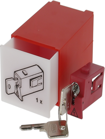 Anvendes sammen TYTAN® II gruppeafbrydere. Aflås TYTAN® II gruppeafbryderen i afbrudt stilling, når der arbejdes på spændingsløse installationer. Hermed opfyldes kravene i Installationsbekendtgørelsen, kapitel 7 mod utilsigtet indkobling. Fås i flere farver. Hver farve har forskellig nøgle.