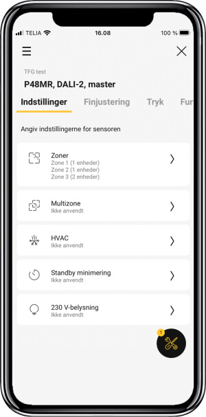 Ved hjælp af innovativ opbygning og hjælpetekster, der guider, hvis du er i tvivl, kommer du hurtigt i mål med konfigurationen af sensorerne.