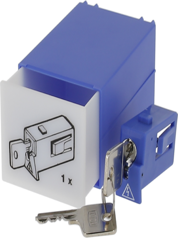 Anvendes sammen TYTAN® II gruppeafbrydere. Aflås TYTAN® II gruppeafbryderen i afbrudt stilling, når der arbejdes på spændingsløse installationer. Hermed opfyldes kravene i Installationsbekendtgørelsen, kapitel 7 mod utilsigtet indkobling. Fås i flere farver. Hver farve har forskellig nøgle.