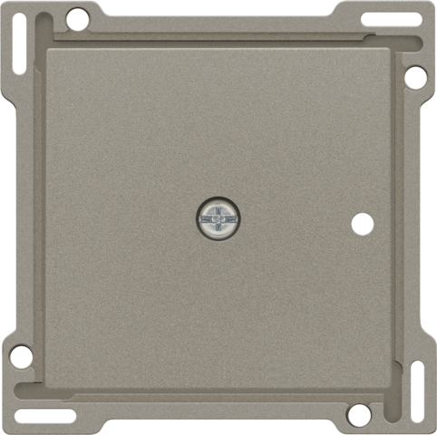 Abdeckung für 1-Kanal-Einbau-RF-Empfänger mit einpoligem (potentialfreiem) Schaltkontakt oder Einbau-RF-Empfänger mit Rollladenfunktion, bronze coated. Die Abdeckung ist von einem flachen Rand umgeben, der an allen 4 Ecken über eine rechteckige Öffnung verfügt, in der sich jeweils ein multi-positionierbarer Schnapphaken befindet. Der Aufbau der Abdeckung sorgt dafür, dass bei unsorgfältiger Putzarbeit die Blende dank der Schnapphaken stets eng anliegend an der Wand befestigt werden kann. Dies funktioniert in zwei Richtungen: Wenn die Unterputzdose aus dem Putz herausragt, überbrücken die multi-positionierbaren Schnapphaken einen Spielraum von 1 bis 1,2 mm; wenn die Unterputzdose zu tief im Putz eingesunken ist, können die Schnapphaken einen Spielraum von bis zu 1,8 mm überbrücken. Der flache Rand um die Abdeckung herum ist ebenfalls mit 4 runden Öffnungen versehen, die dafür sorgen, dass die Blende korrekt positioniert werden kann im Verhältnis zur Abdeckung. Nach der Montage der gesamten Einheit (Blende, Abdeckung und Mechanismus) sind, dank dem flachen Rand an der Abdeckung, keine Metallteile mehr sichtbar.