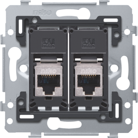 2 RJ45-Anschlüsse STP Kat. 5E, flache Ausführung, inkl. Sockel 71 x 71 mm mit Schraubbefestigung