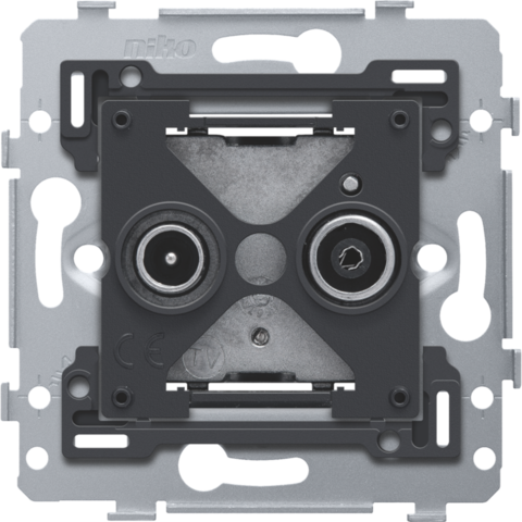 Mechanismus für 2 Mehrfach-Koaxialanschlüsse für TV und FM, mit Schraubbefestigung. Eine Abdeckung in der Farbe Ihrer Wahl muss separat bestellt werden.