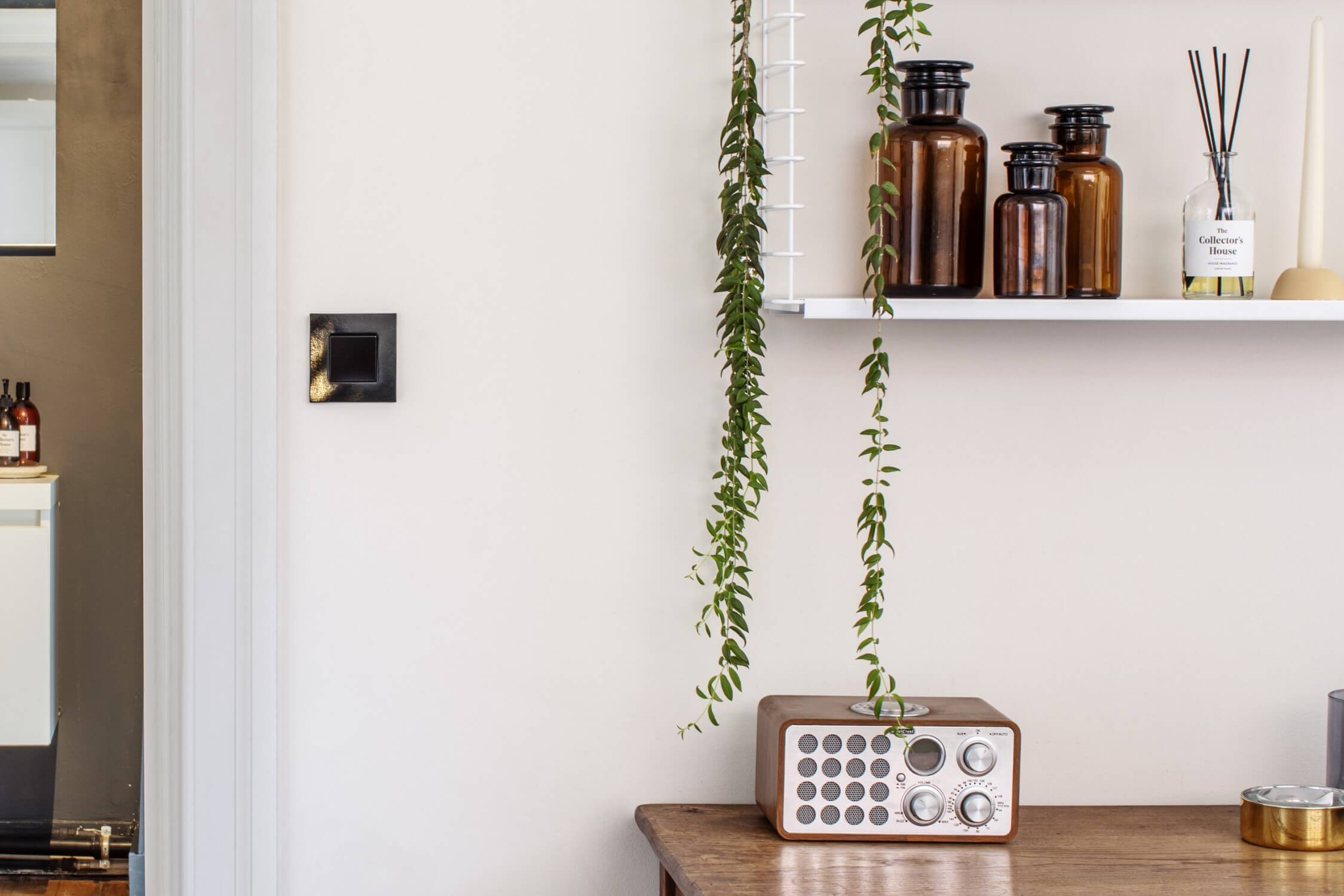 Im Schlafzimmer oder Flur kann die Wahl neutraler ausfallen. Das ist ja das Schöne an Schaltern: Man kann in verschiedenen Räumen oder innerhalb desselben Raums unterschiedliche Modelle verwenden. Man darf es nur nicht übertreiben und sollte auf eine gewisse Ausgewogenheit achten.“