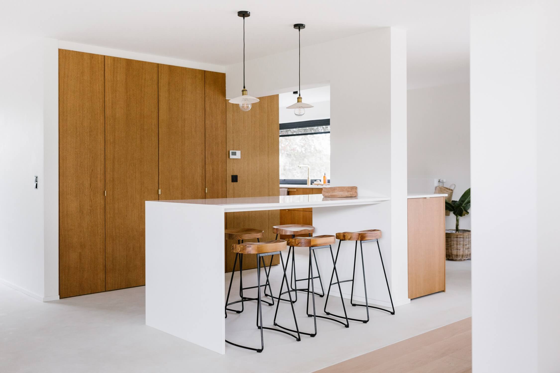 Dennoch ist es wichtig, dass Aspekte der Einrichtung zu den Schaltern passen oder sie aufgreifen - sei es das Holz Ihres Tisches oder die goldene Verzierung der Bilderrahmen -, um eine gewisse Konsistenz zu wahren. Wenn man sich für Harmonie oder Ton in Ton entscheidet, kann man durch Verarbeitung und Form ein subtiles Extra schaffen. Trauen Sie sich, mit Texturen und Materialien zu spielen!“