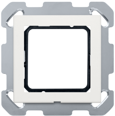 Das Adapterrahmen-Set Swiss line besteht aus einem Metallrahmen, der einen Adapterrahmen aus Kunststoff enthält. Sie wird verwendet, um 45 x 45 Funktionen wie die vernetzten Zigbee®-Produkte von Niko in einer Swiss Unterputzdose einzubauen.