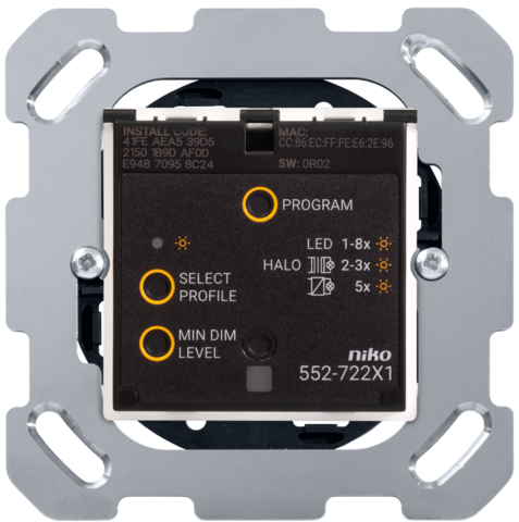 Der vernetzte Zigbee®-Dimmer Swiss line enthält einen Dimmerkontakt zur Bedienung der Beleuchtung. Er enthält einen Sender und einen Empfänger, die drahtlos mit dem drahtlosen intelligenten Hub für Niko Home Control kommunizieren.