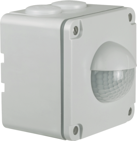 Bewegungsmelder mit erhöhtem Spritzwasserschutz für Wandmontage von 1,0 bis 3,0 m möglich dank horizontalem und vertikalem Erfassungsbereich. Ideal für Nasszellen und Außenanwendungen. Externer Schalter (ON).