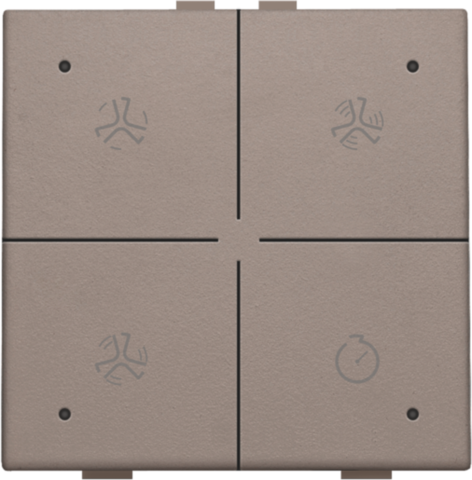 Mit diesem Taster lassen sich vier Lüftungspositionen einstellen. Er wird mittels Klickmechanismus an der wandmontierten Platine befestigt. Eine LED zeigt an, welche Belüftungsstufe eingestellt ist. Schalter mit Taste. Farbausführung: greige.