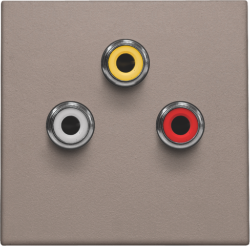 Abdeckung mit drei Cinch-Audio-Anschlüssen. Farbausführung: greige.