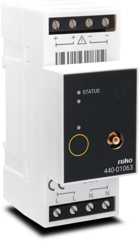 Das Messmodul verwendet das Niko RF-Protokoll (Radiofrequenz 868 MHz), um seine Messwerte drahtlos an den vernetzten Schalter-Gateway von Niko (410-0100x) zu übertragen.
