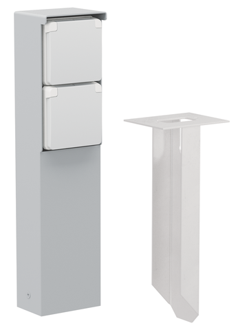Die Anschlusssäule enthält zwei Steckdosen (16 A/250 Vac) mit Schutzkontakt, Berührungsschutz und Steckklemmen. Die Anschlusssäule hat die Schutzart IP44 und ist mit einer Bodenspieß ausgestattet, die direkt in die Erde geschlagen werden muss. Durch sein funktionales und schönes Design passt die Anschlusssäule perfekt in den Außenbereich, z. B. auf Terrassen und in Außenküchen. Darüber hinaus ist die gesamte Einheit spritzwassergeschützt und deshalb besonders geeignet für die Verwendung in feuchten Räumen und ammoniakreiche Umgebungen.