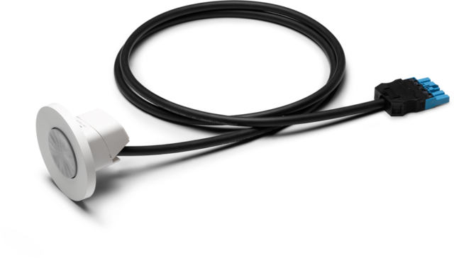 Präsenzmelder P47MR, DALI-2, Master, 12-13 m, 360°, für Deckeneinbau (SnapFit), WAGO WINSTA® MIDI 2 m Kabel mit 5-poligem Stecker, weiß.