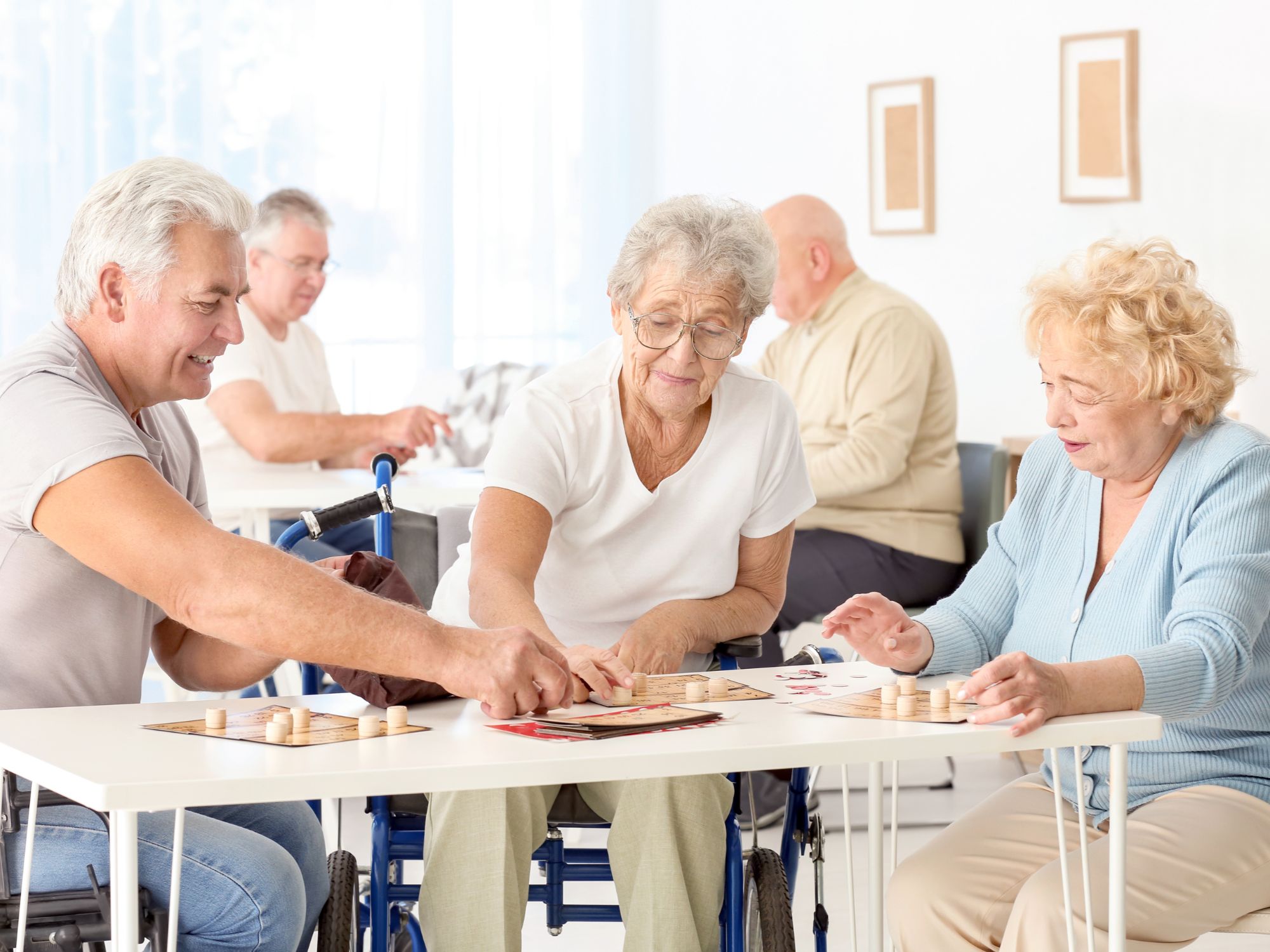 Zum Beispiel im Wohnbereich eines Pflegeheims mit HCL: In diesem Aktivitätenraum wurde HCL mit einem integrierten DALI-2 P48-Melder installiert. Helligkeit und Farbe der Beleuchtung passen sich automatisch an die Tageszeit und die aktuelle Tätigkeit an. Wählen Sie bis zu 24 individuell konfigurierbare Voreinstellungen. Die Voreinstellungen lassen sich manuell an die aktuellen Anforderungen anpassen. Je nach Einstellung und Tageszeit wird automatisch eine der Voreinstellungen aktiviert.