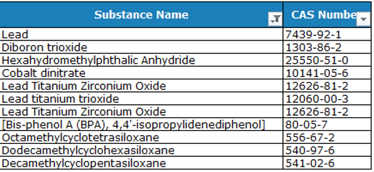 The list below includes substances of very high concern SVHCs known to date which are present in certain NIKO articles in concentrations above 0.1%. For these SVHCs SCIP notifications are submitted to ECHA under the Waste Framework Directive.