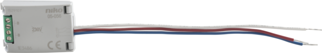 This interface converts the external push-button contacts to a Nikobus telegram. The telegram is sent along the bus while the contact is closed. The interface has 2 inputs for the connection of external push buttons and one output for the connection to Nikobus. This interface is supplied with power via Nikobus.