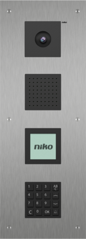 This modular flush-mounted external unit offers an elegant and flexible solution for your projects (up to 256 housing units). The start screen of the display can be configured individually (e.g. name of the residence). The front plate is made from high-quality brushed stainless steel. This complete video set is equipped with a dome camera, audio, display and code lock module.