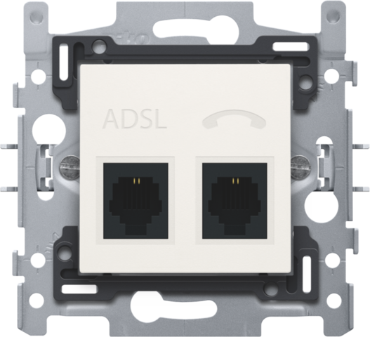 Base for claw fixing with central plate and 2 outlets for ADSL/VDSL. This splitter can also be used for ADSL2, ADSL2+ and VDSL2. Finishing colour: white