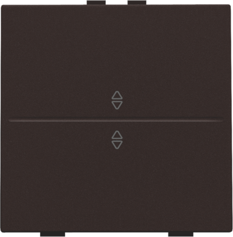 Finishing set with a single key for a wireless switch or a bus push button with 2 control buttons. The key is imprinted with "up"/"down" arrows. Colour: Dark brown.