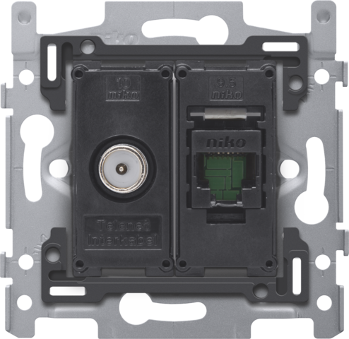 Mechanism with RJ45 connection point UTP Cat. 5E and coaxial connection.
