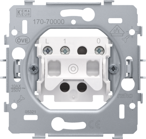 Mechanism for a N.O. push button with 3 connection terminals, with claw fixing. A finishing set and faceplate in the colour of your choice must be ordered separately.