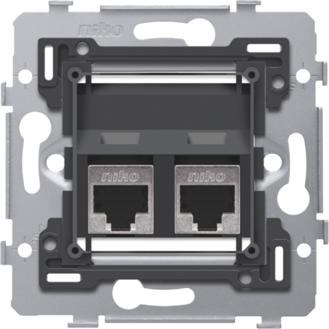 This mechanism with 2 RJ45 connection points STP Cat. 6A, oblique model, is used to make a network connection with 2 devices for telephone, Ethernet, IP or internet applications. Due to its high quality, this type also offers the possibility to transmit TV distribution signals for analogue, digital and interactive TV images. The mechanism is connected in a star configuration to the central connection cabinet using a cable of the same performance type. The shielding ensures a more malfunction-resistant connection. The base has internal dimensions of 45 x 45 mm and external dimensions of 71 x 71 mm and is equipped with screw fixing. A finishing set in the colour of your choice must be ordered separately.