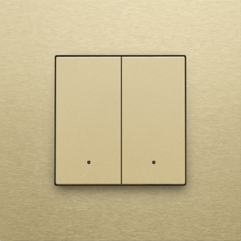 Double push button with LEDs and comfort sensors for Niko Home Control, gold coated.