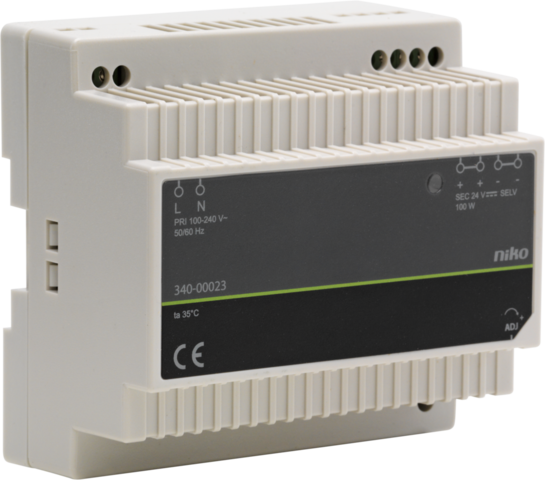 This power supply is suitable for powering LEDs and is designed for DIN-rail mounting. It has a power supply of 100 W. This power supply conforms to the European directive for EMC and safety, EN 61347-2-13.