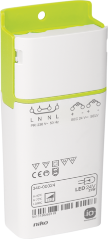 This LED dimmer receiver is designed for the control and dimming of LEDs and is part of the wireless system io-homecontrol®. Transmission of the signals occurs via radio waves between 868MHz and 870MHz. Only products that do not transmit continuously are permitted between these frequencies; this ensures that there is no interference. Each controller can control an unlimited number of receivers simultaneously. Each receiver can be controlled by up to 16 controllers. The LED receiver is suitable for supplying power to 10 monochrome Niko LED strips. The total connected load can max. 25W. This dimmer receiver is easy to install in small spaces thanks to its compact dimensions. The power supply is protected against overloading, overheating and short circuiting. User manual included.