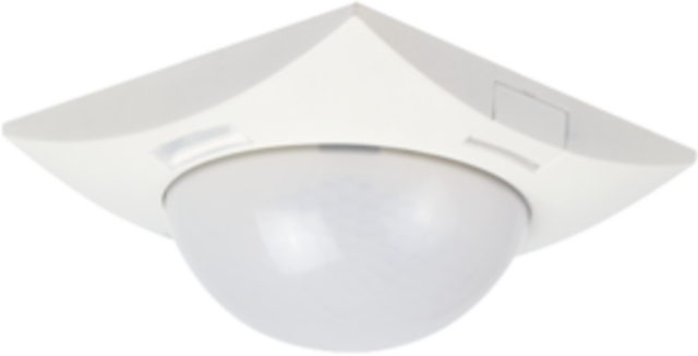 The presence detector with four channels and daylight control for flush-mounting box in ceilings is suitable for switching the indoor lighting on and off. The detector is equipped with an integrated light sensor and is only compatible with KNX®.