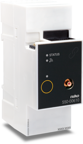 The RF Interface Easywave with Easywave protocol lets you use Niko wireless Easywave controls in the Niko Home Control installation. This module receives Easywave radio signals, which allows the use of controls: