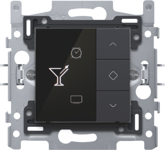 This control is connected directly to the installation and is used to set and call up a desired scene. Scenes can also be automatically called up using sensors. This control is mounted in a flush-mounting box at a height of 140 to 150 cm above the surface of the floor.