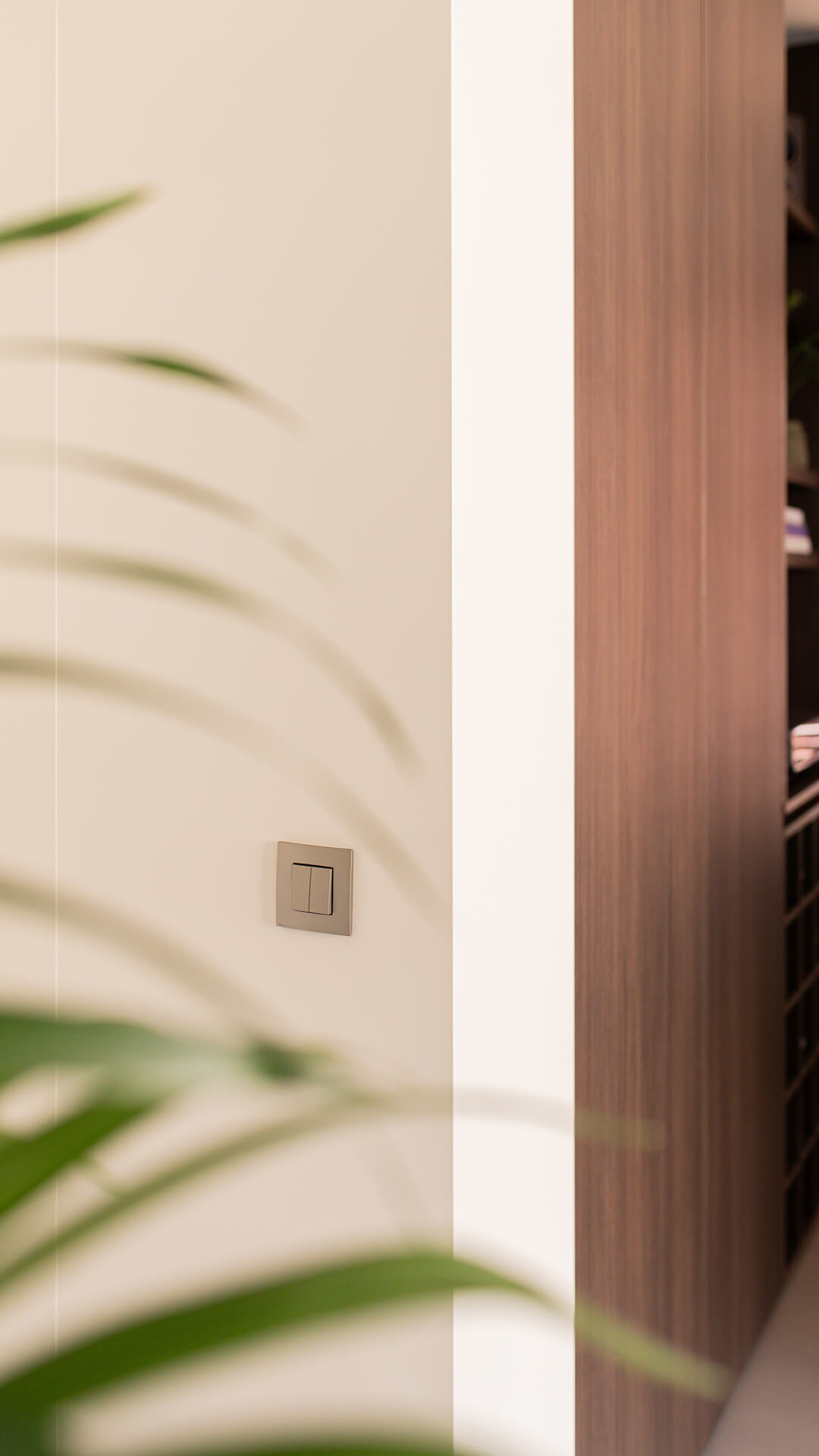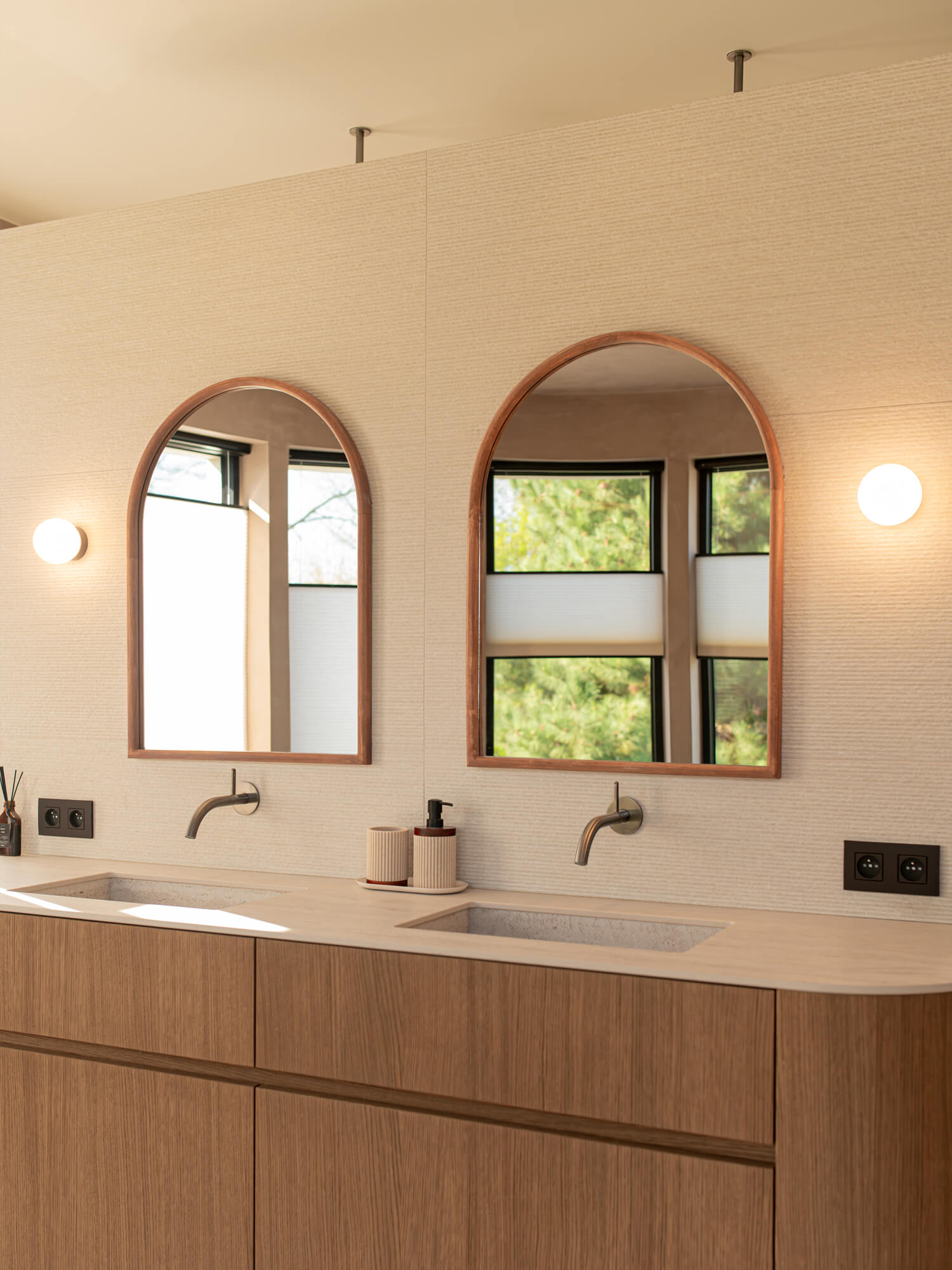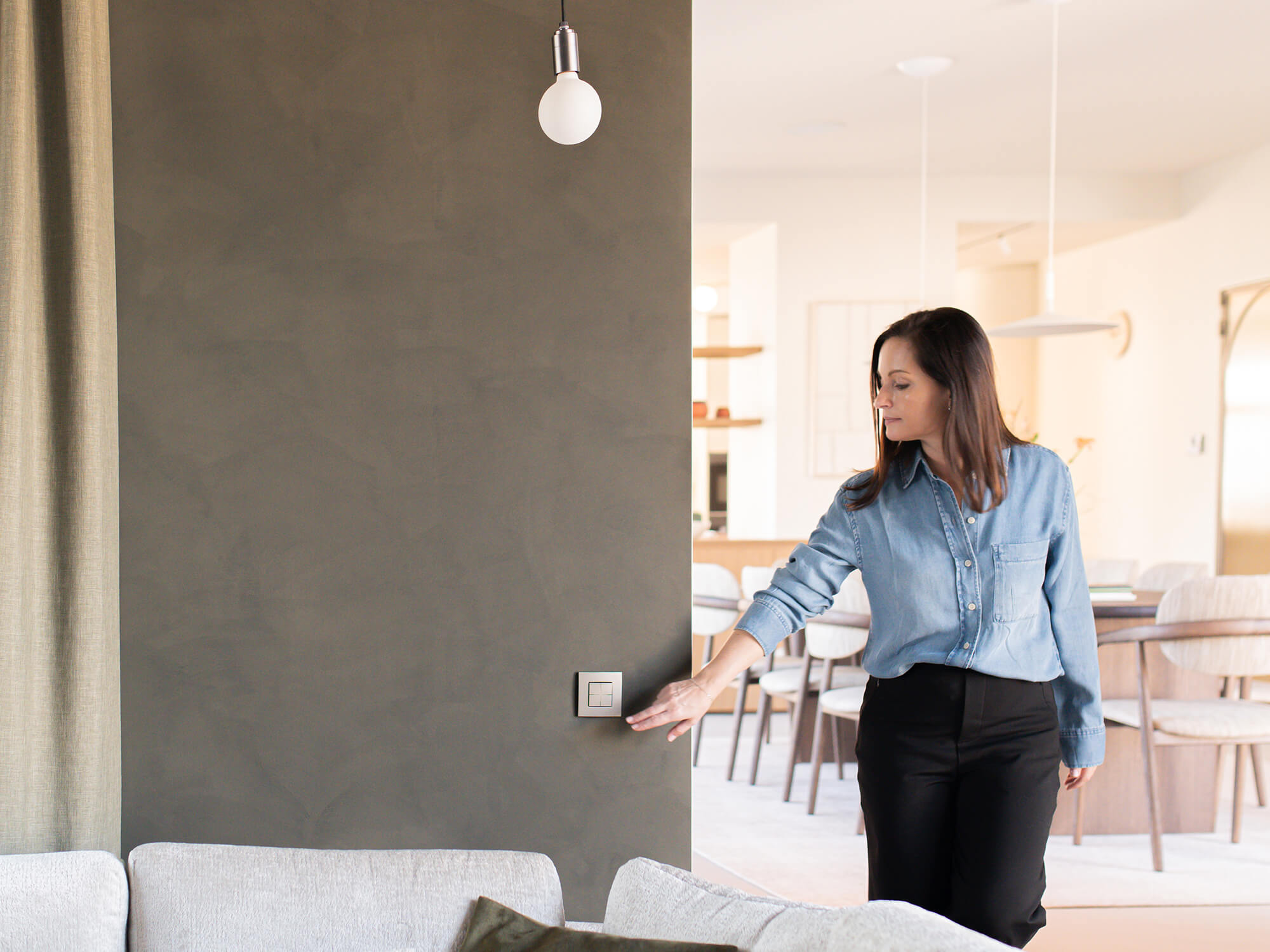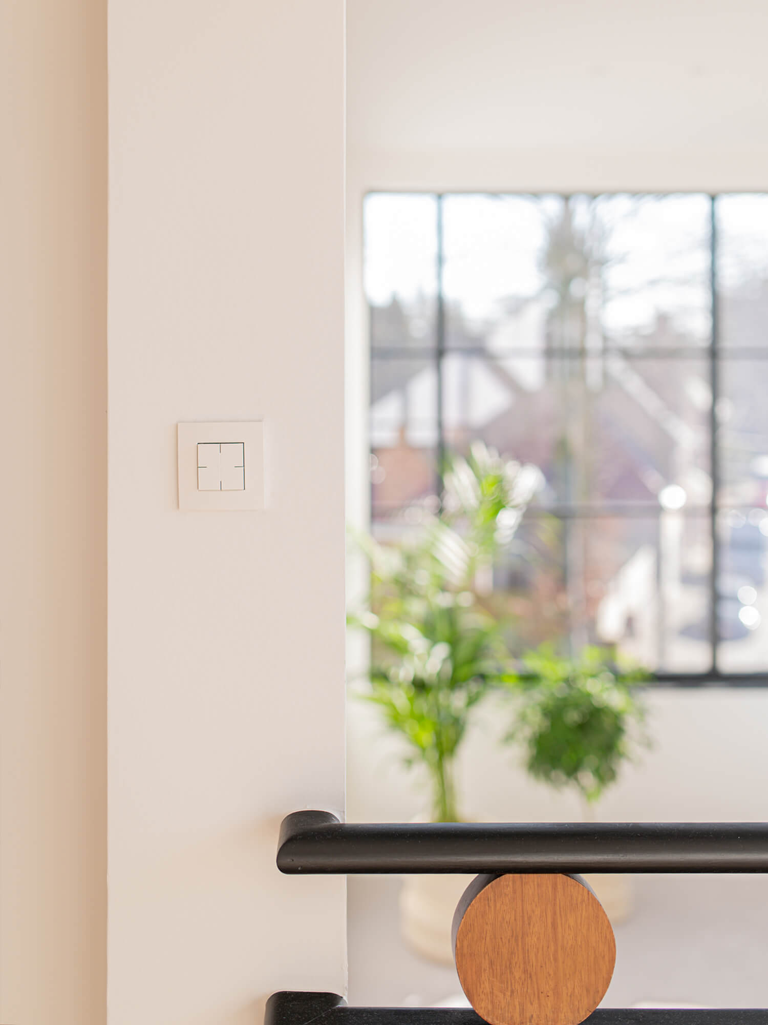 To be in keeping with the original Art Deco style, Eline opted for rounded shapes, natural materials and warm shades. That softness is reflected in every detail – also in the choice of Niko Intense switches.