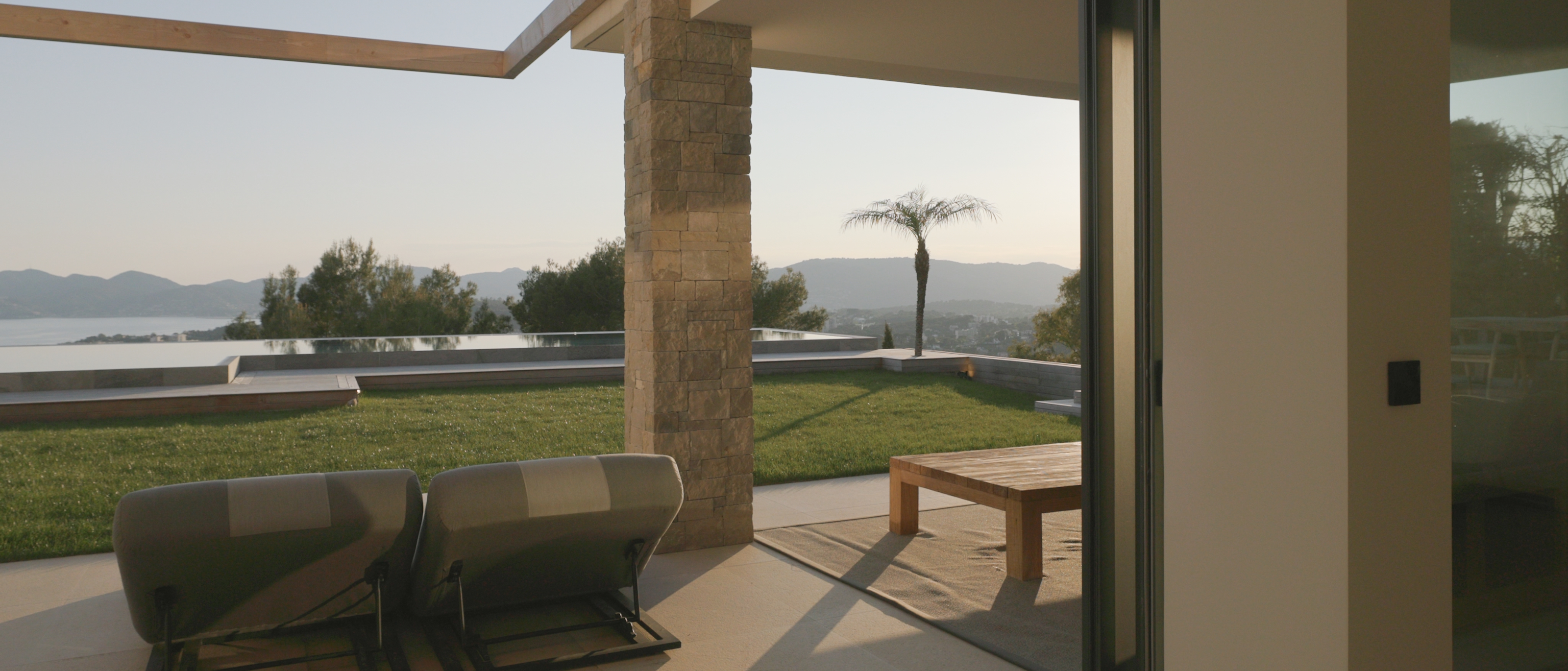 A transparent design invites the outdoors to extend into the indoor setting. The volumes and high-quality textures such as stone, light wood, stainless steel and glass form a clean, uncluttered style. The Mediterranean light illuminates matt shades of chalk, sand and oak and emphasises the flowing lines.