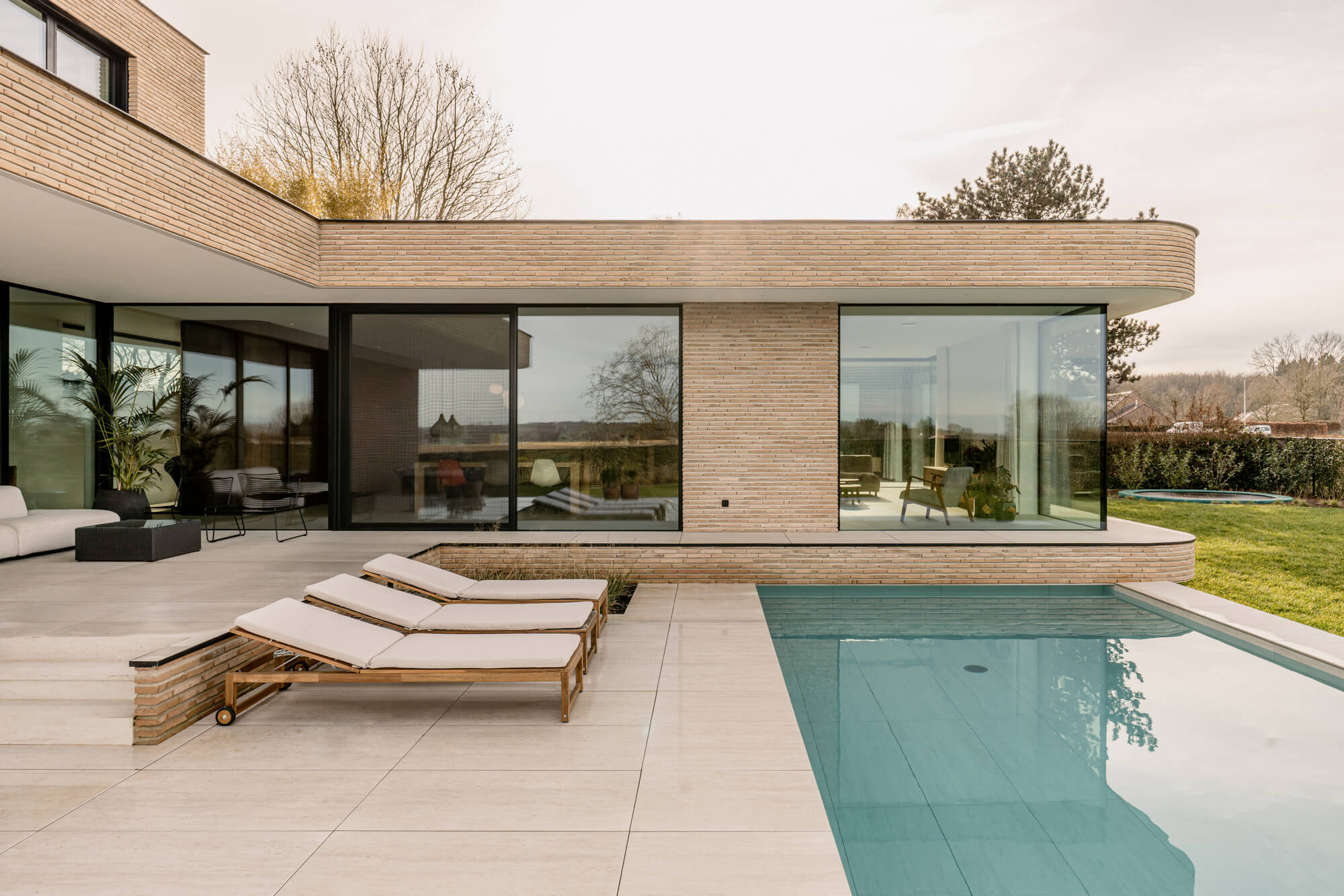 Motion detectors automatically switch on lighting, while the Niko Home Control external video unit provides smart access control, and splash-proof Niko Hydro socket outlets around the swimming pool provide safe outdoor power. Through this, Niko contributes to the overall concept not only inside the home, but outside as well.