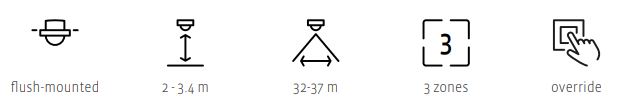 The lighting can either turn on automatically at presence, or by operating the 230 V push-button. The lighting will automatically switch off after a set time when the last person has left the room. The daylight control can be overridden by the 230V pushbutton. The solution enables wireless communication between the detector and wireless and battery-free push-buttons, thus wiring to push-buttons in e.g. glass walls or partition walls is not necessary