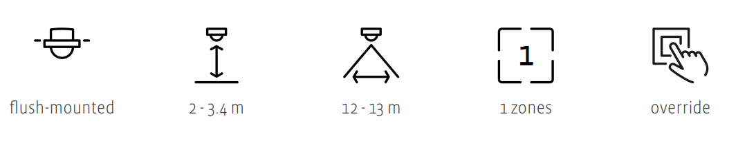 The light can either turn on automatically at presence or manually by pressing a 230 V push-button or via DALI-2 push button interface. The light will switch off after a predefined period of time after the room has been left.