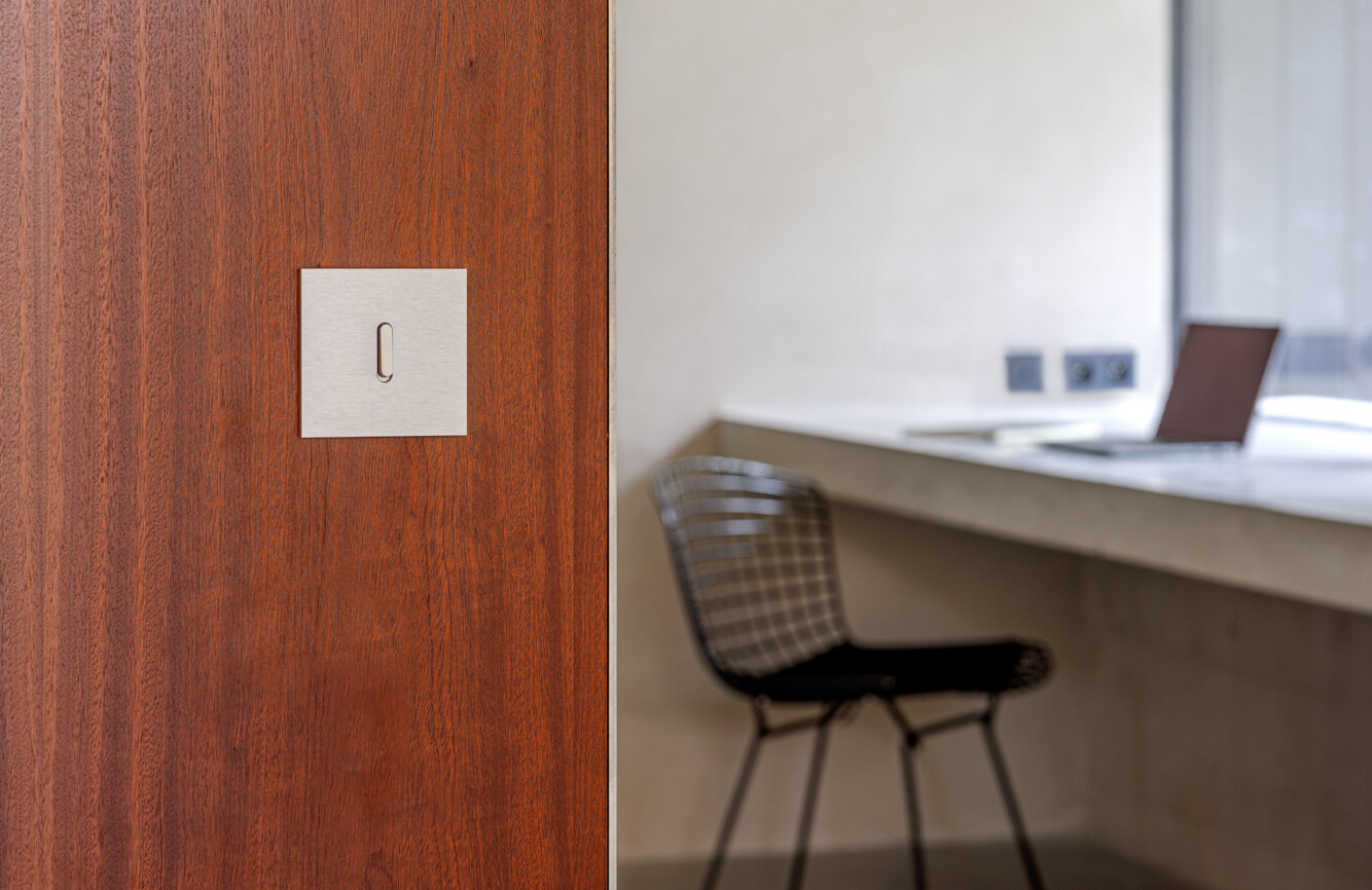 Niko Rocker is characterised by its minimalist design. Both the faceplates and the rocker bar itself are finished in exclusive materials such as aluminium and steel.