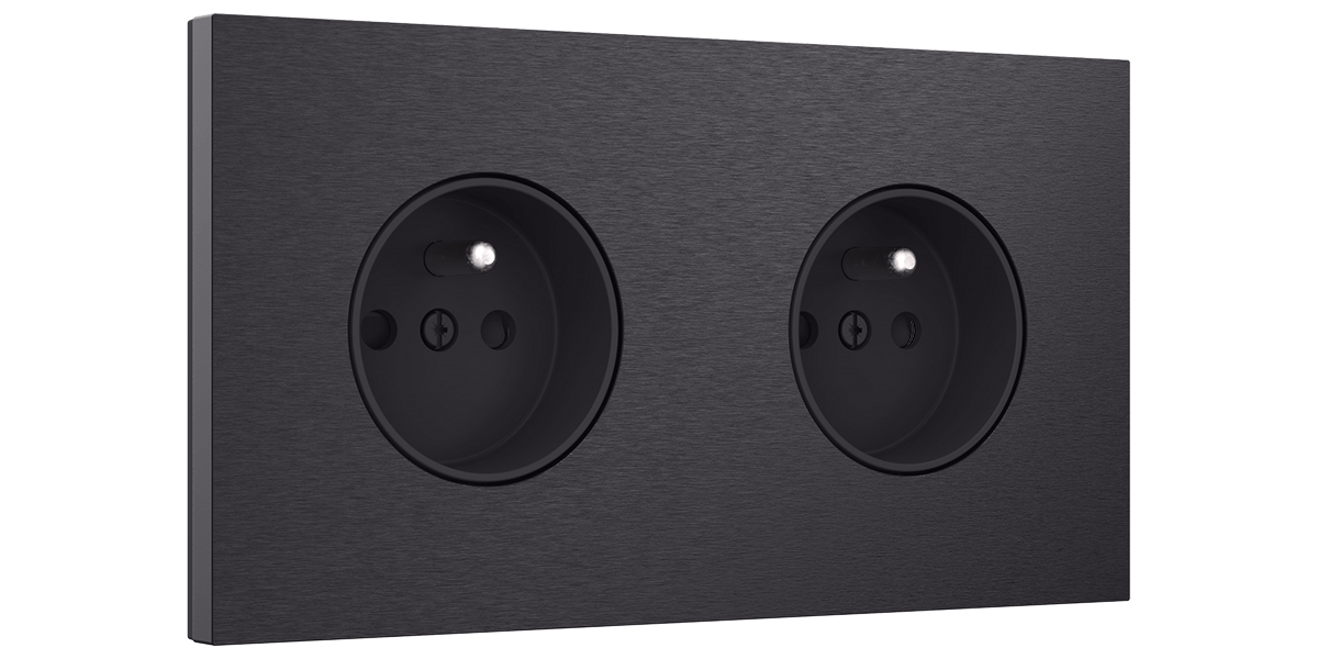 The socket is available in six finishings, ranging from light to dark, warm to cool. Pair your light switches with sockets in alu gold brushed, alu blue grey brushed, alu black brushed, alu grey brushed, steel white coated or steel champagne coated. Each carefully chosen option ensures a seamless match for any décor.