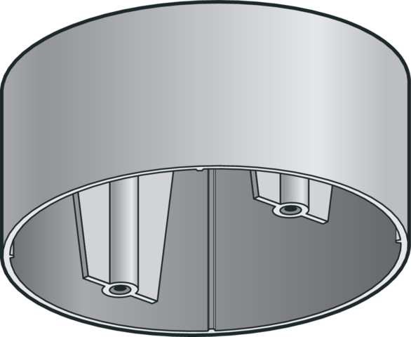 Mounting box intended for ceiling mounting of 360° presence detector.