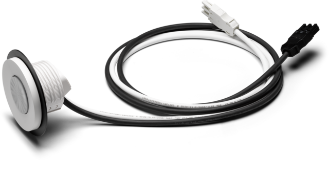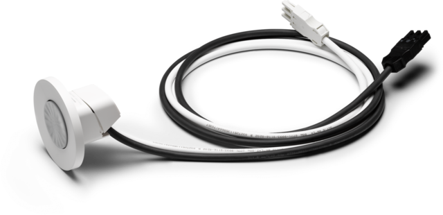 This flat and discrete presence detector is a 1-channel master detector for automatic lighting control. The SnapFit mounting system guarantees fast and stable installation. The detector is premounted with 2 cables and 3-pole male and female connectors that are each unique, which helps to avoid installation errors and save time.