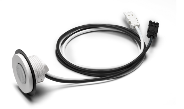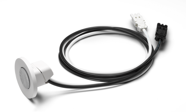 This flat and discrete presence detector is a 1-channel master detector for automatic lighting control. The SnapFit mounting system guarantees fast and stable installation. The detector is premounted with 2 cables and 3-pole male and female connectors that are each unique, which helps to avoid installation errors and save time.