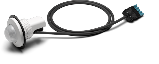 Presence detector P48LR, DALI-2, master, 32-37 m, for flush mounting (SnapFit), Wieland gesis® 2 m cable with 5-pol. connector, white.