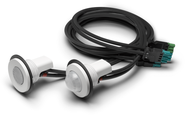 Presence detector P48LR, DALI-2, master, 32-37 m, for flush mounting (SnapFit), Wieland gesis® 2 x 2 m cable with 5-pol. connectors, white.