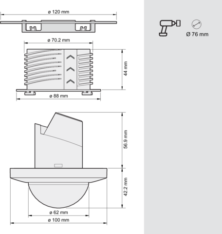 - Minimum flush-mounting depth: 56.9 mm