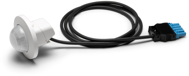 Presence detector P49LR, DALI-2, BMS, 32-37 m, for flush mounting (SnapFit), WAGO WINSTA® MIDI 2 m cable with 5-pol. connector, white.